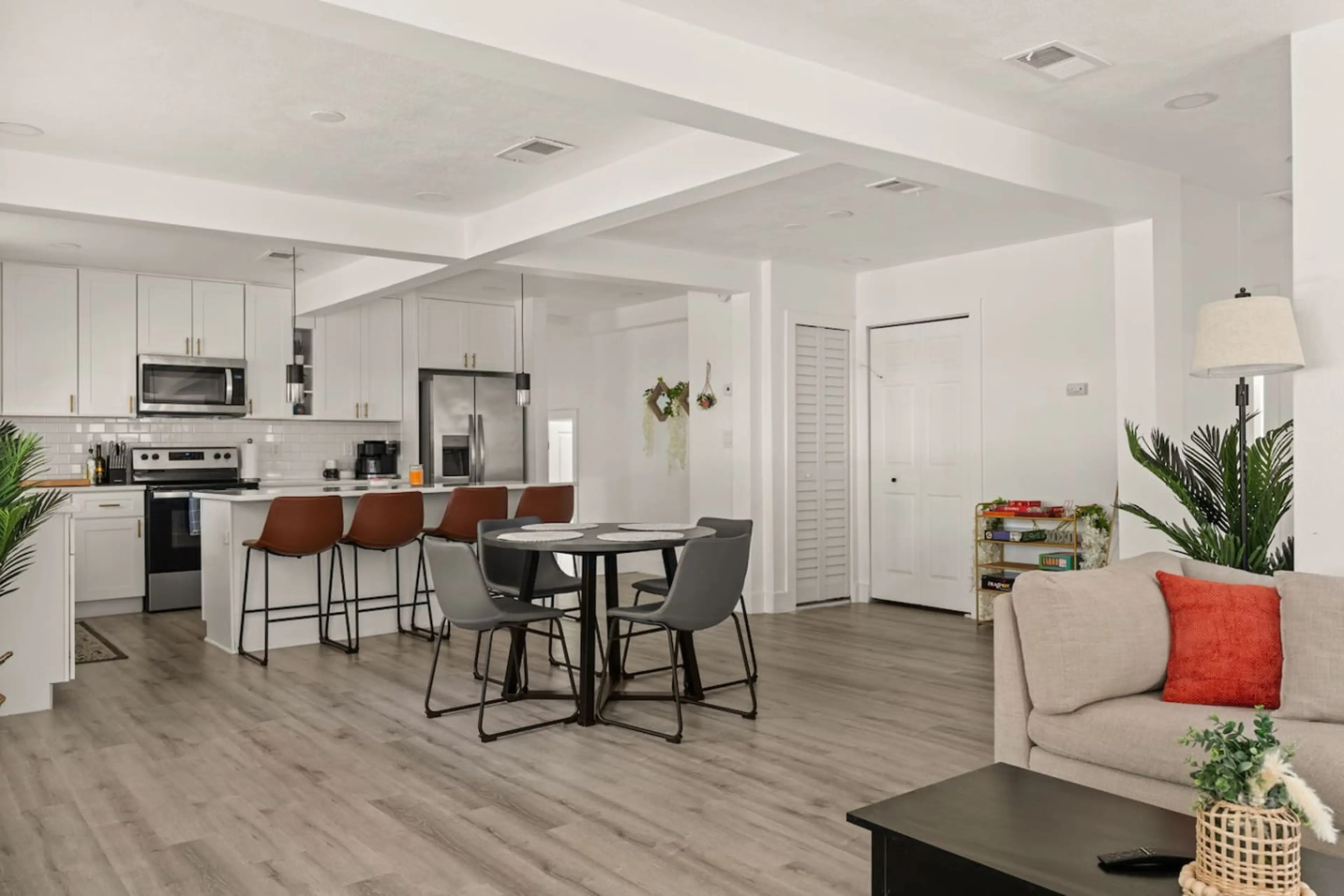 Completely remodeled 4-bedroom, 4-bath retreat in heart of Pensacola, sleeps 8. Enjoy a sleek, modern interior, open-concept living/dining/kitchen, and large fenced backyard perfect for relaxing or gathering. Walk to top bars, restaurants & nightlife just minutes away. Ideal for groups seeking style...